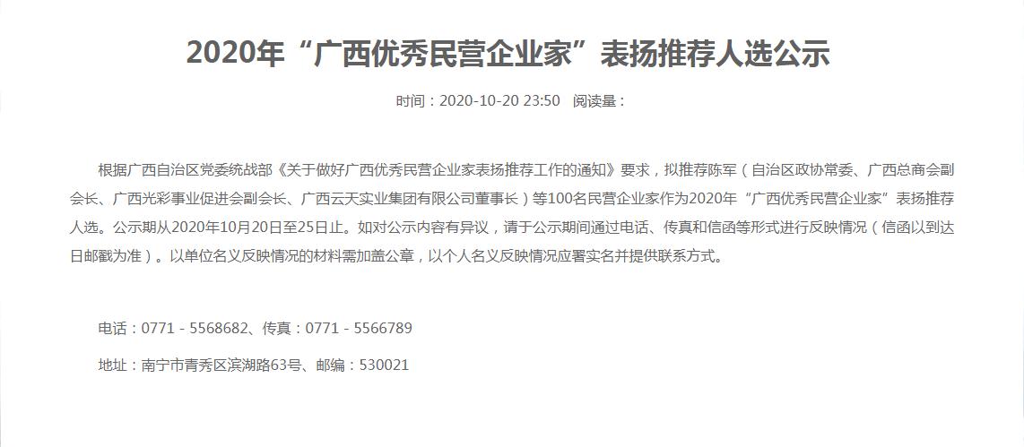 10月29日,在廣西第一個(gè)“民營(yíng)企業(yè)家日”到來(lái)之際,自治區(qū)黨委統(tǒng)戰(zhàn)部、自治區(qū)工商聯(lián)、自治區(qū)非公有制經(jīng)濟(jì)工作領(lǐng)導(dǎo)小組辦公室對(duì)100名優(yōu)秀民營(yíng)企業(yè)家進(jìn)行通報(bào)表?yè)P(yáng),和桂集團(tuán)總裁黃偉文實(shí)力入選。