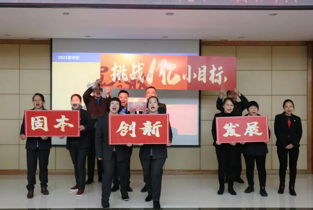 黃總對2021年工作進(jìn)行了總體安排和部署,向各分子公司、職能部門發(fā)布人事任命和目標(biāo)責(zé)任狀。莊重的宣誓,和對完成目標(biāo)的決心,激發(fā)了全體家人贏戰(zhàn)2021的決心和信心。