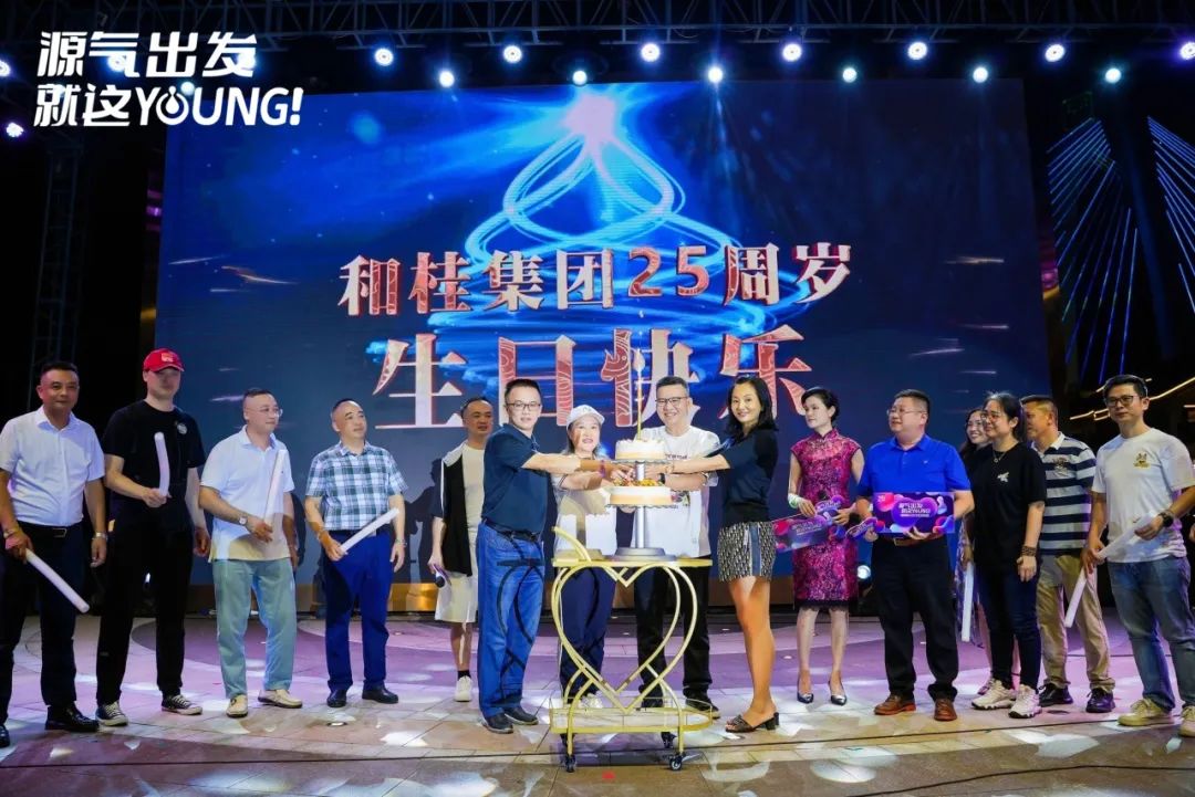 7月22日晚20:00,“源氣出發(fā)·就這YOUNG!”和桂集團25周年慶暨2023夏日友情天·城市音樂會在康樂青山·江畔小鎮(zhèn)舉行。和桂集團董事長、源生堂品牌創(chuàng)始人黃偉文,攜集團精英與各界合作伙伴、特邀嘉賓,以及和桂生產(chǎn)、源生堂養(yǎng)發(fā)、科桂貿(mào)易、和你供應(yīng)鏈四家子公司的VIP客戶共800人相聚星空下,以音樂之名,重溫舊日時光,分享生日喜悅。