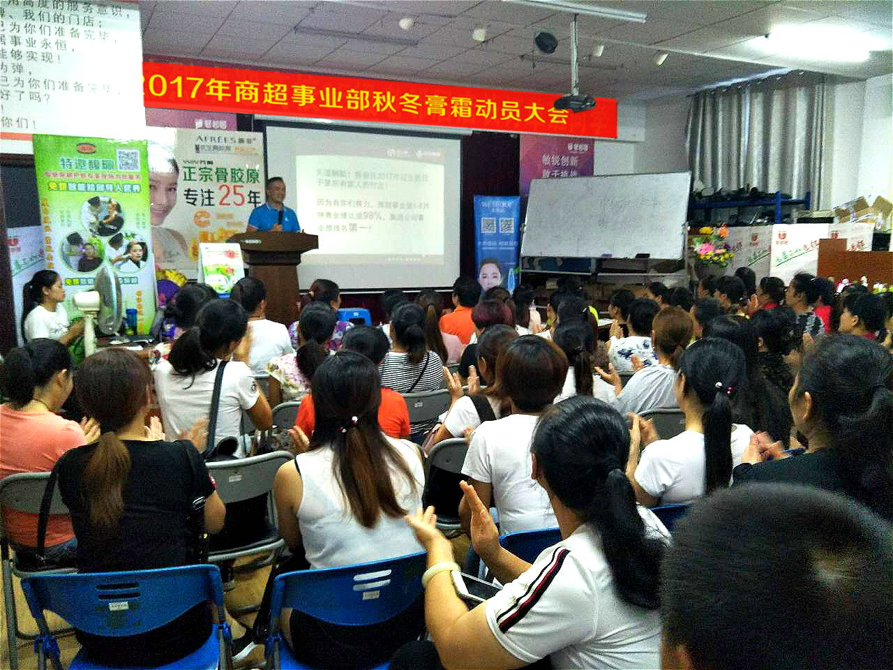 為確保打贏2017年這場膏霜戰(zhàn)役,9月25日-9月26日商超事業(yè)部總經(jīng)理肖剛帶領(lǐng)市場部各品牌在全區(qū)召開《2017年商超事業(yè)部秋冬膏霜動員及巡場大會》,分別開展了玉林市場、貴港梧州市場、桂林市場、柳州來賓河池市場四場會議,此次的動員大會為我們的膏霜戰(zhàn)役的勝利打下基礎(chǔ)。